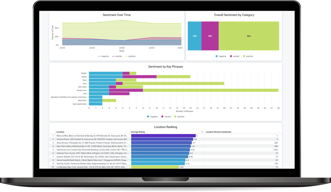With Social Reviews by Alida, organizations can make data-driven decisions by leveraging customer feedback to uncover actionable insights. Uncover satisfaction, trends, and customer sentiment by collecting reviews from review sites and app stores.