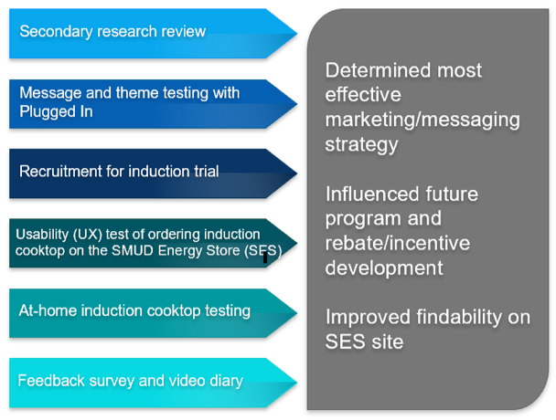 By using in-home user testing, SMUD was able to control the version and model of the cooktop the members tested, as well as the timing of the tests and the feedback mechanism. Compared to using the typical survey approach, this allowed the market research team to reduce variability in the testing experience and ultimately ensure the results were actionable.